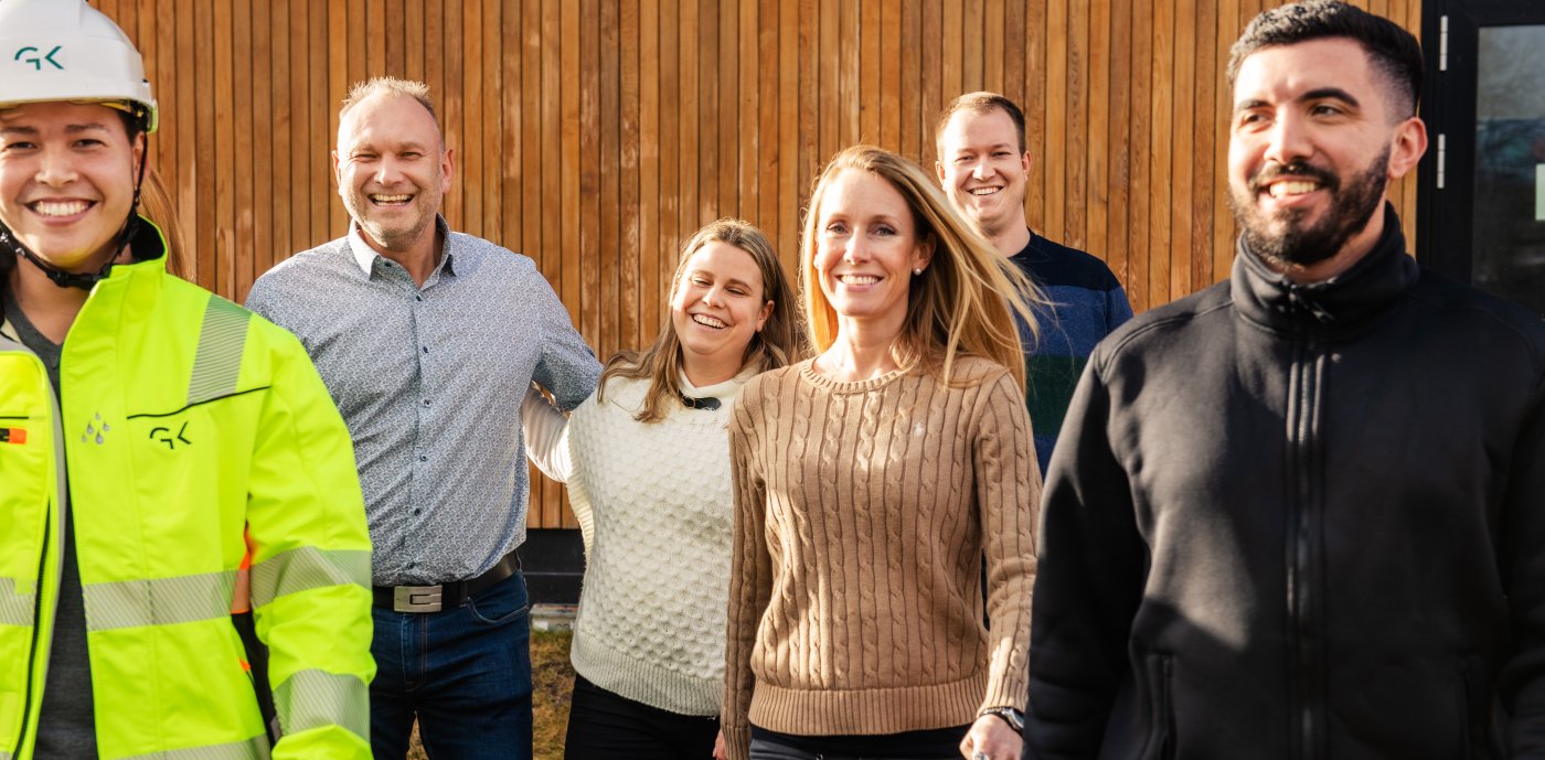 GK har om lag 3000 ansatte og er Skandinavias største tekniske entreprenør og servicepartner. Vi skal være den mest attraktive arbeidsgiveren i vår næring, og vår misjon er å bygge bærekraftige samfunn for generasjoner.