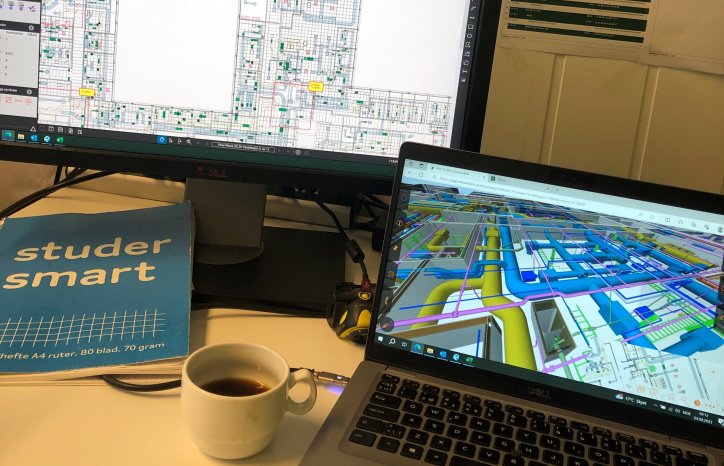 Jeg var først to uker på hovedkontoret på Ryen. Der vi fikk jeg prøve meg i programmer som Revit og Simien, bli med på befaringer, og hjelpe til med aktuelle problemstillinger og oppgaver for kunder. Etter det ble jeg utplassert på det nye sykehuset i Drammen hvor jeg sammen med Sondre blant annet har deltatt på møter på byggeplassen, tatt støvprøver i kanaler, merket komponenter og aggregater, og gjort diverse oppgaver i programmet StreamBIM. Jeg har også fått lift-kurs til merkingen av komponentene, noe som var spennende å prøve seg på.
